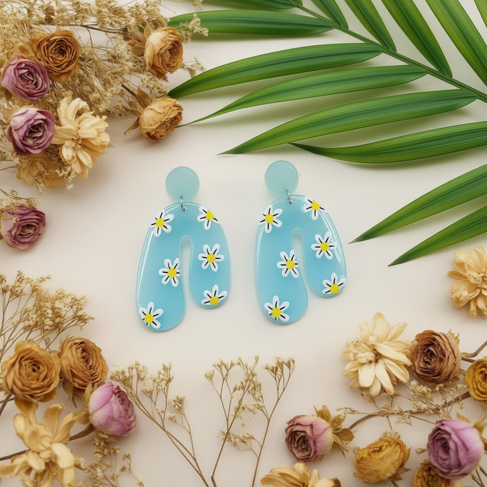 Orecchini dipinti PENDIENTE Orecchini pendenti con disegno floreale blu per gioielli da donna alla moda