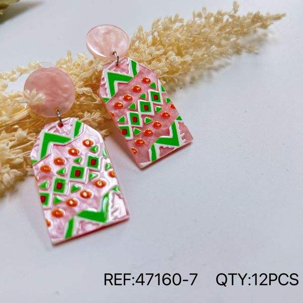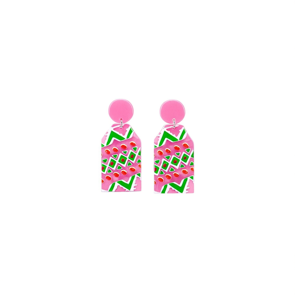 Orecchini Dipinti PENDIENTE Rosa Verde con Motivo Geometrico, Gioielli Statement, Accessori Moda