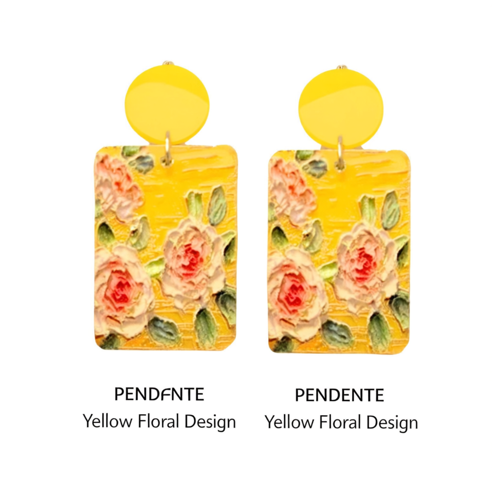 Orecchini Dipinti PENDIENTE Design Floreale Giallo Forma Rettangolare Gioielli alla Moda Set da 12 Pezzi