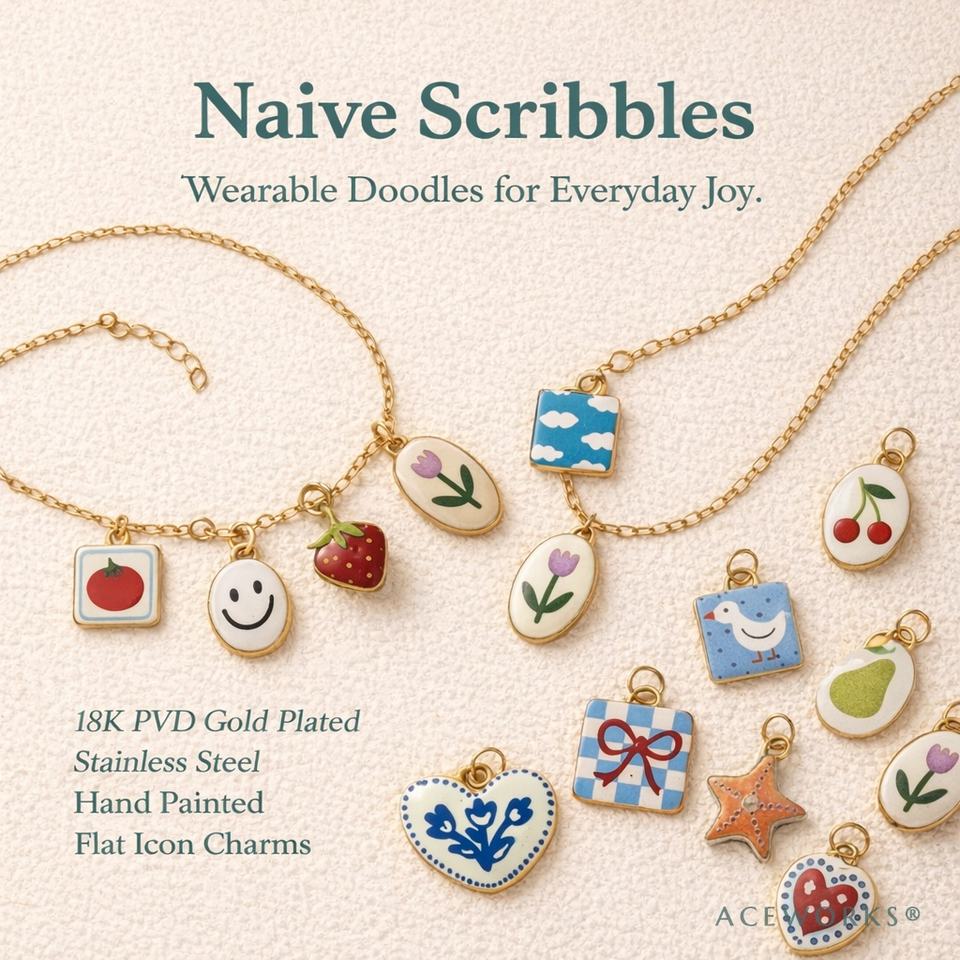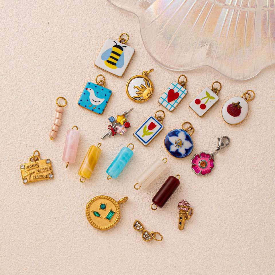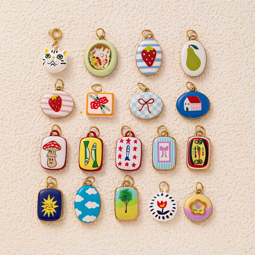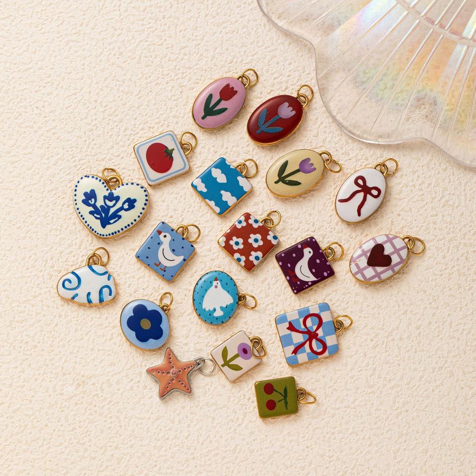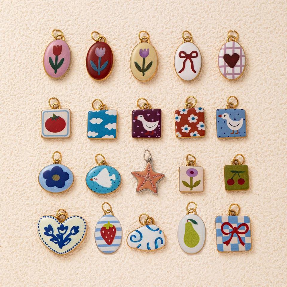 Ciondolo in Acciaio Inox Dipinto a Mano Stile Naif | Placcatura Oro PVD 18K | Impermeabile e Resistente per Creazione Gioielli