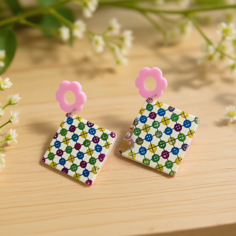 Orecchini Pendenti Quadrati Dipinti con Ciondoli a Fiore, Motivo Multicolore, Gioielli alla Moda, Set da 12 Pezzi