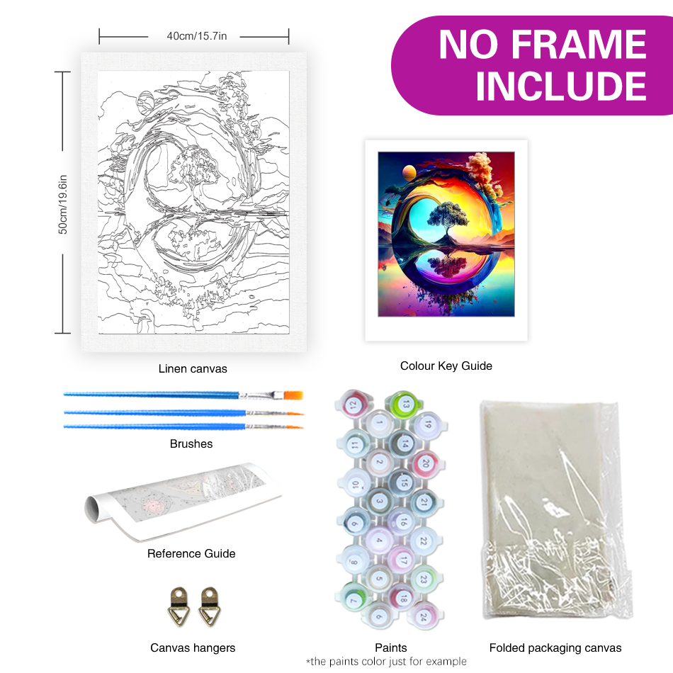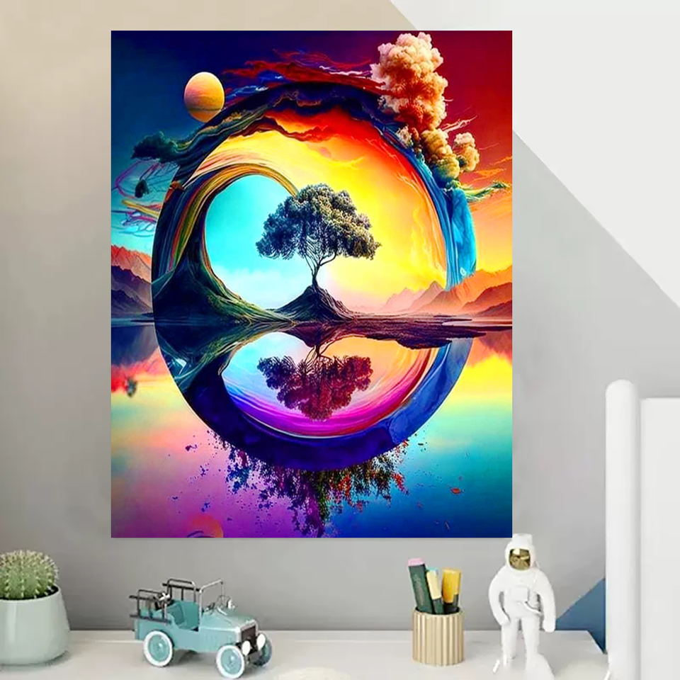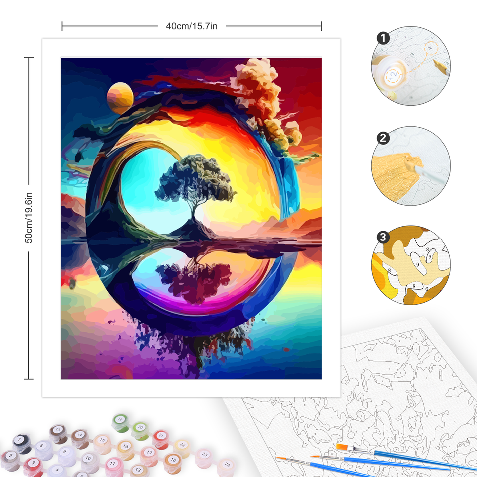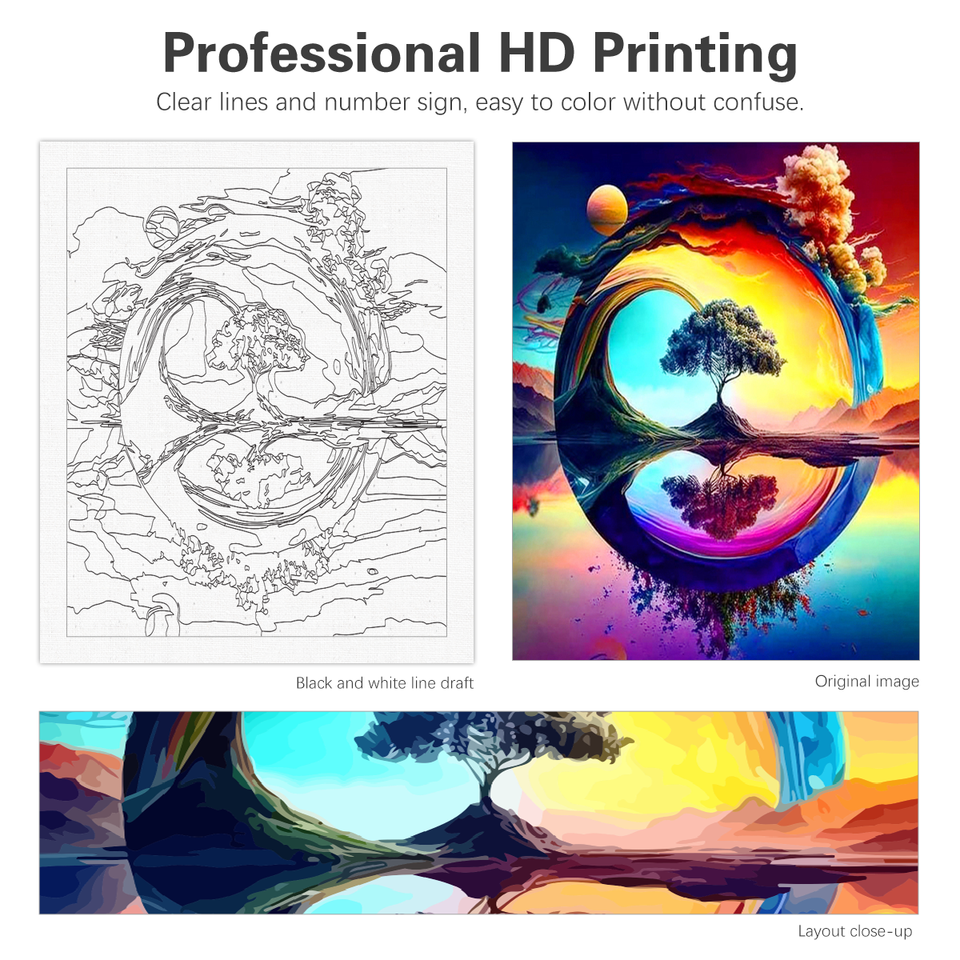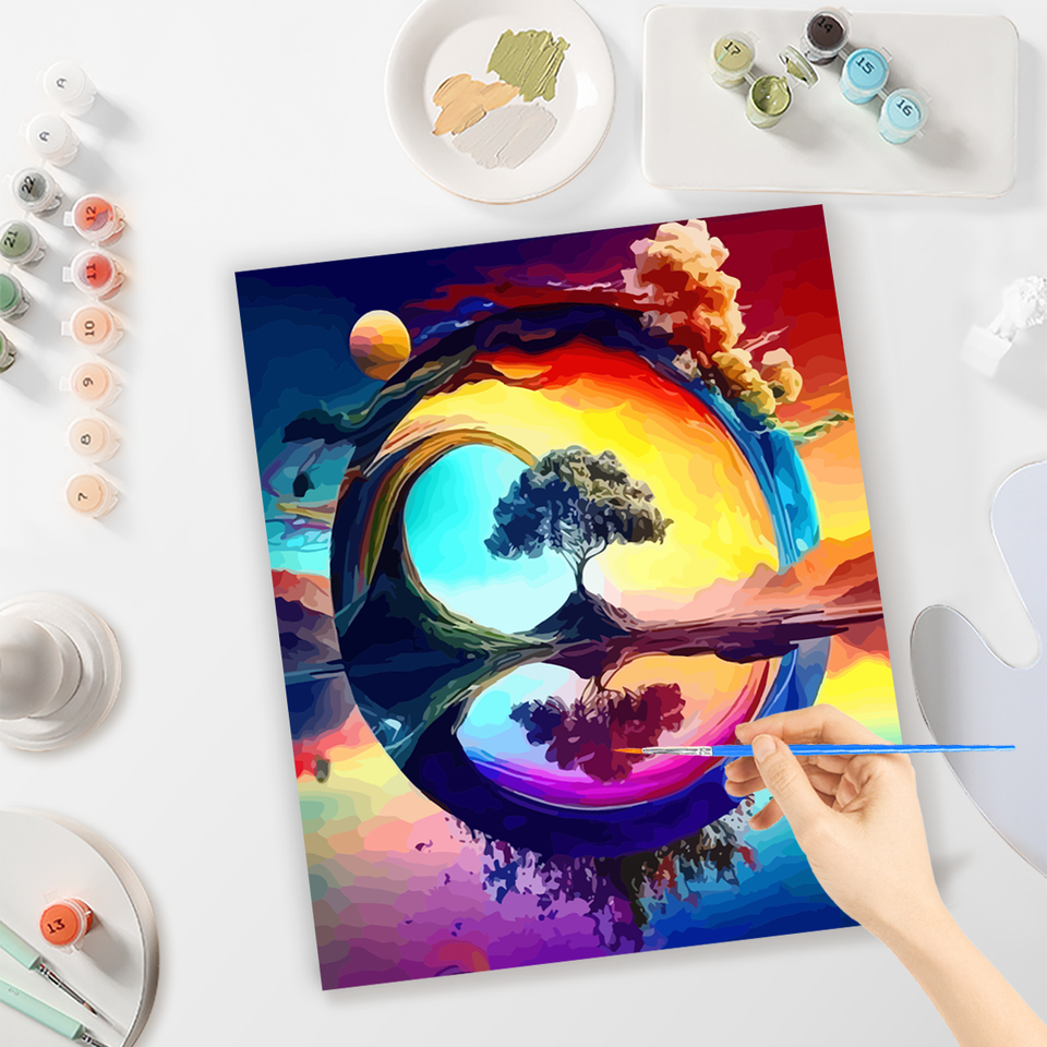 Kit di Pittura a Numeri per Adulti, Paesaggio con Onde Riflettenti e Alberi, Disegno su Tela Dipinto a Mano per Decorazione Casa