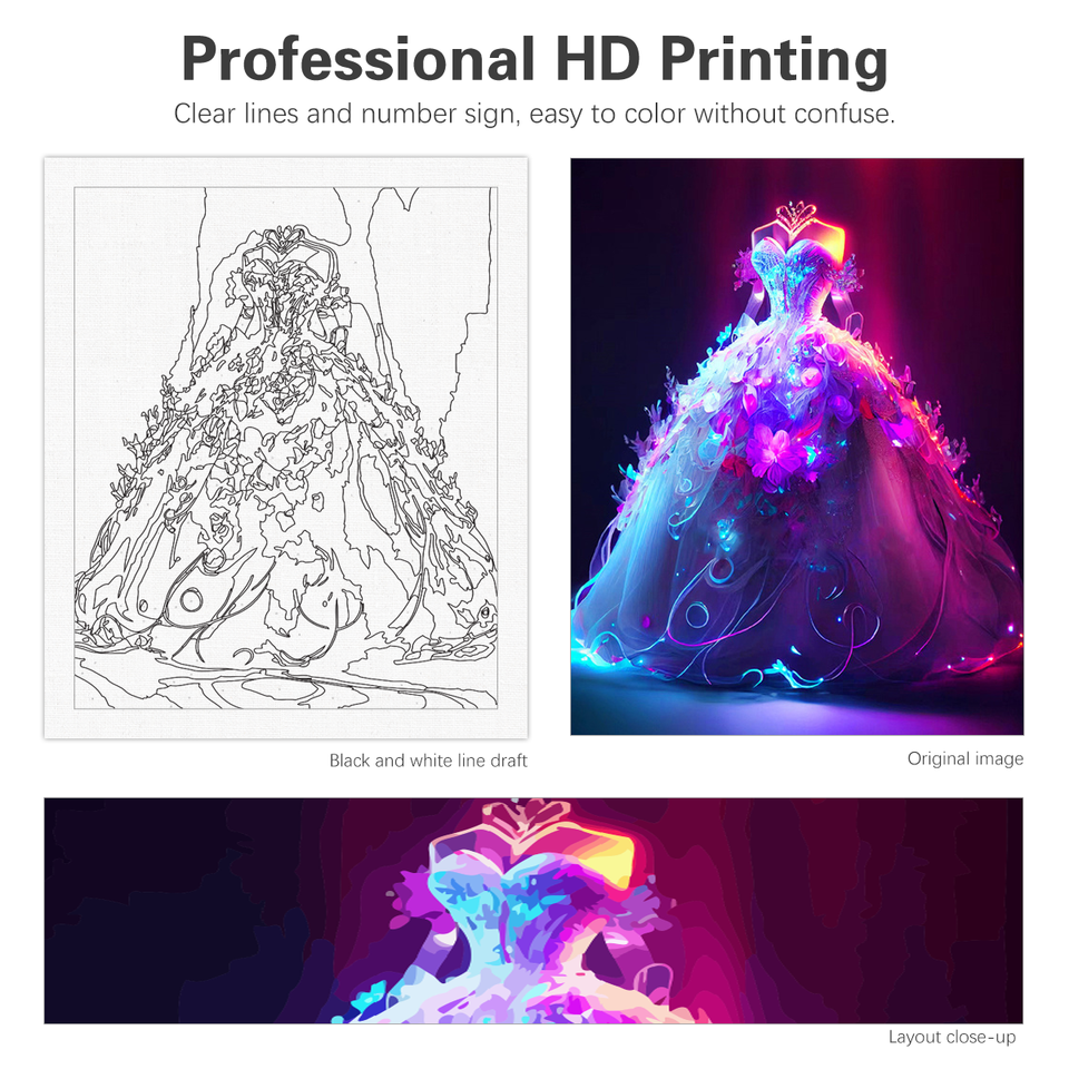 Painting by Numbers for Adults Starter Kit Fantasy Dress Drawing Coloring by Numbers for Home Decors 40x50cm/16x20inch