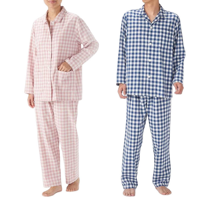 Pigiama per uomo e donna in cotone Unisex stampa pigiama all'ingrosso a manica lunga con bottoni pigiama