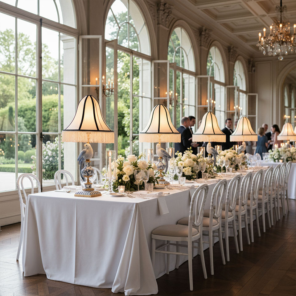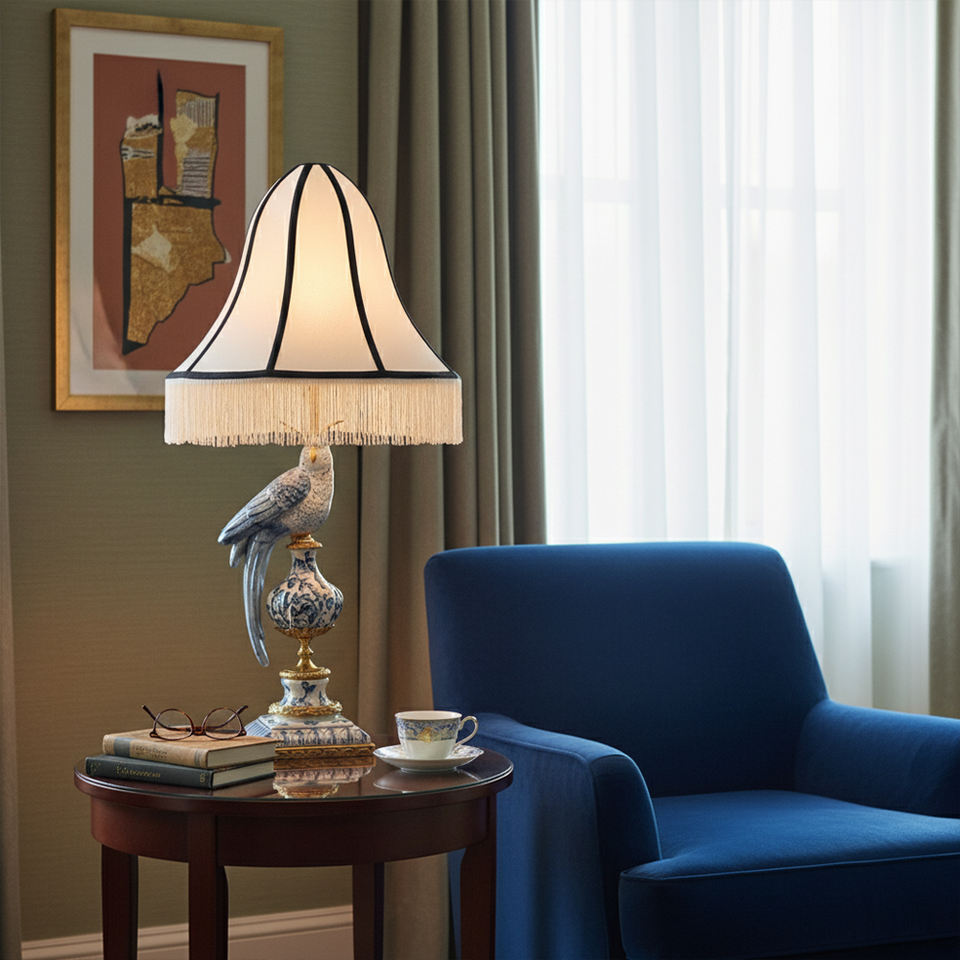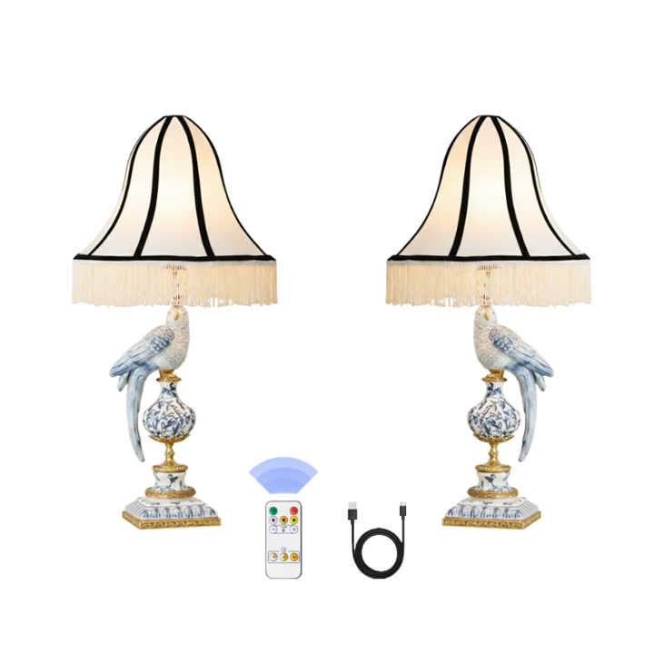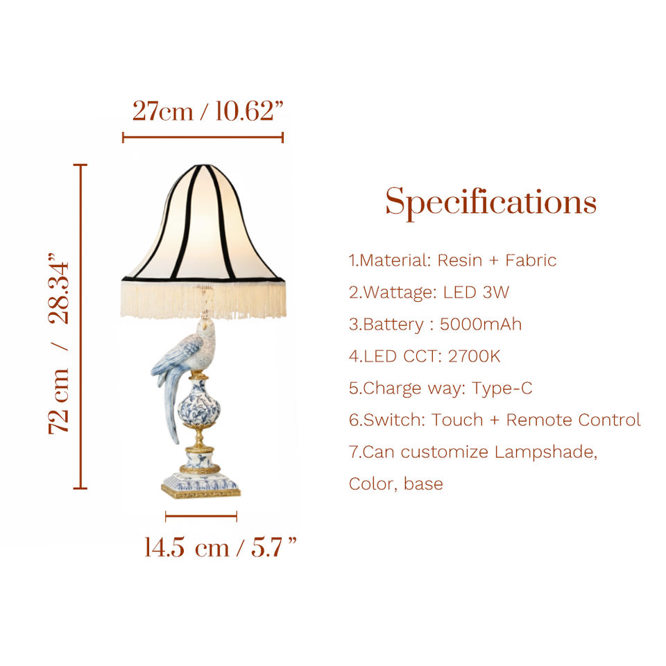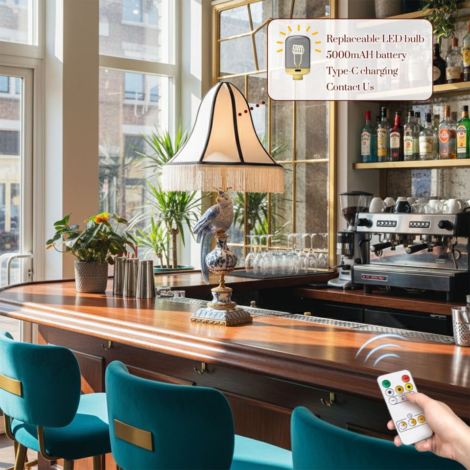 Palazzo di lusso 5000mAh batteria in resina lampada da tavolo a LED Cordless blu pappagallo campana nappa paralume E14 2700K caldo Touch Control