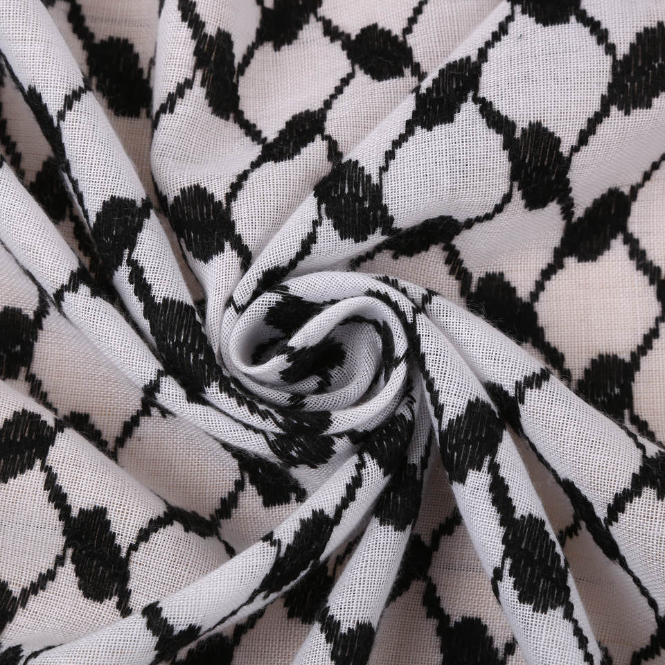 Yashmagh Palestinese da Uomo, Sciarpa Quadrata Nera in Poliestere con Piccole Nappe e Design Tinto in Filo