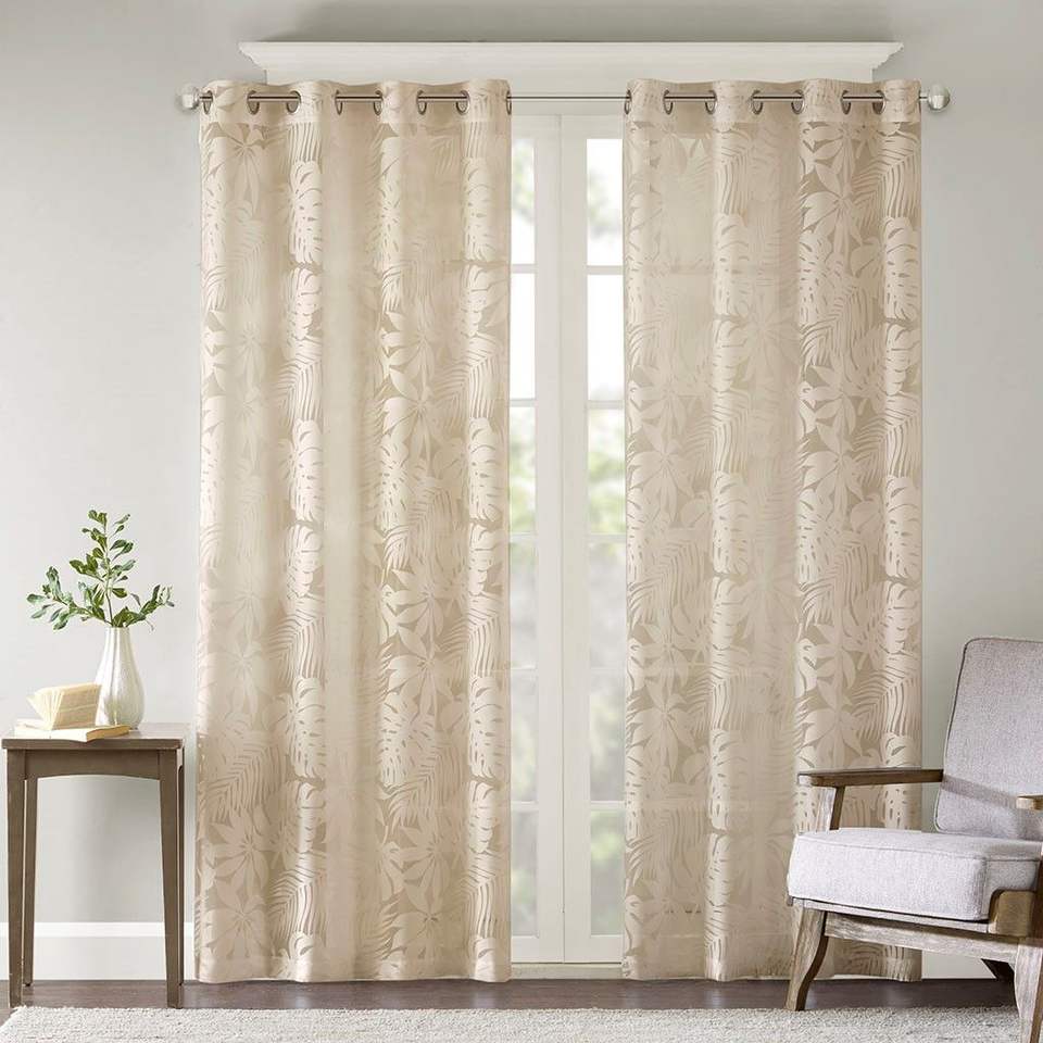 Palm Leaf Burnout Window Sheer 1 Piece Sheer Curtain Curtains & Valances
