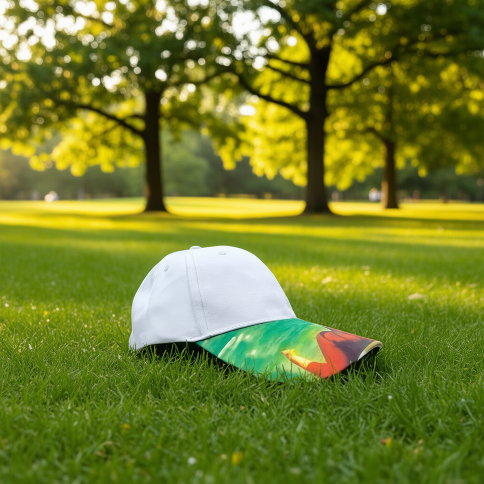 Cappellino da campeggio Paloma a 6 pannelli bianco con stampa digitale regolabile per adulti, uso esterno primavera estate