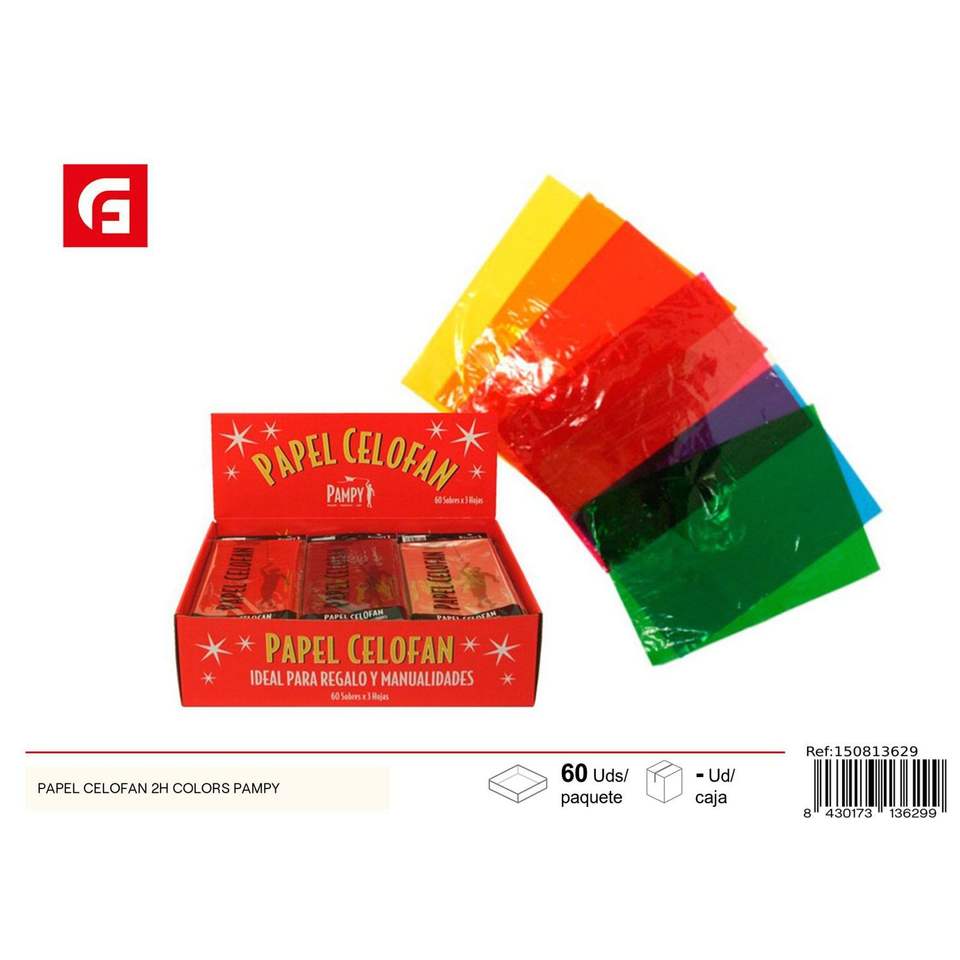 Carta cellophane Pampy, 60 fogli, 2H colori, ideale per confezioni regalo e lavori manuali