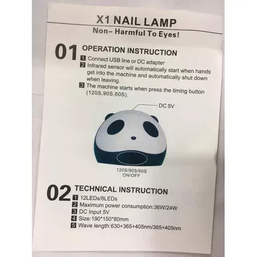 Lampada UV LED per Unghie Panda a 8 Luci con Sensore Automatico e Lunghezza d'Onda 365Nm per Polimerizzazione Smalto Gel
