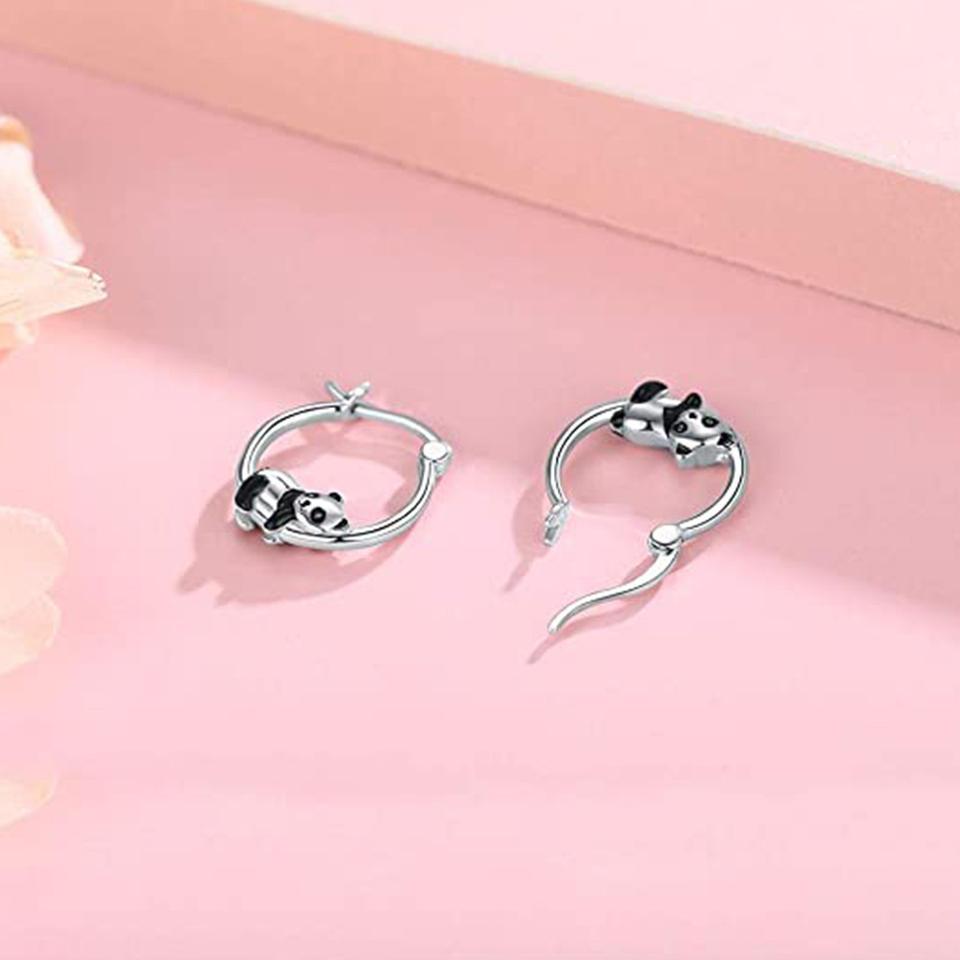 Panda Animal Hoop Earrings 925 Silver White Gold Women's Cute Everyday Wear Jewelry