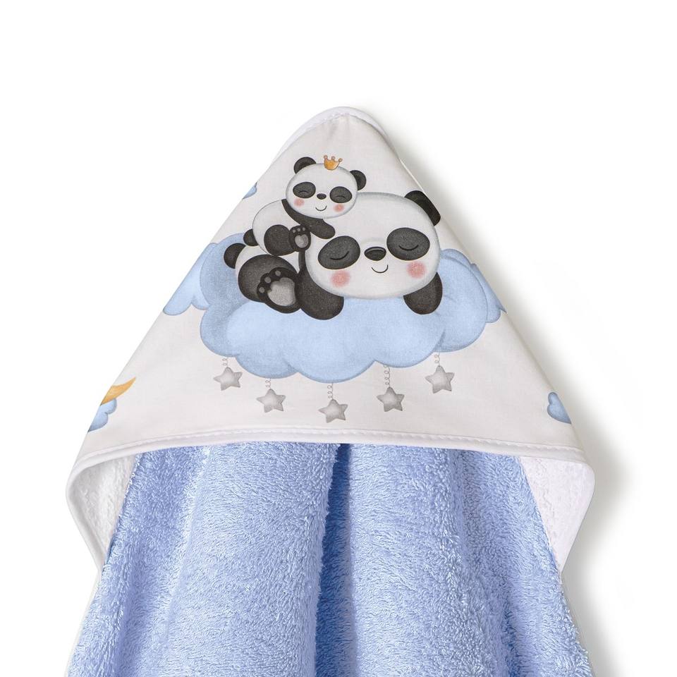 Panda Nube 1X1 MT. Asciugamano da Bagno Stampato in Cotone Ipoallergenico Blu con Motivo Cartone Animato per Uso Domestico e Bagno dei Bambini