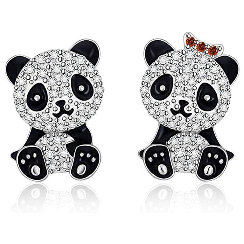 Panda Stud Earrings For Women White Gold Alloy Crystal Cartoon Cute Fashion Jewelry Gift Earrings With Micro Insert Design