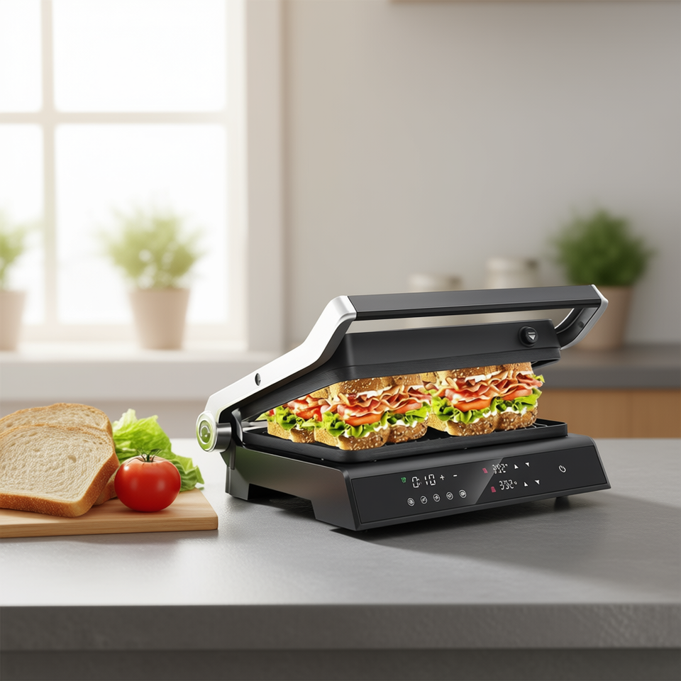 Panini Press Grill 1200W Stainless Steel Non-Stick Ribbed Plates 4 Slices Household Electric Sandwich Maker