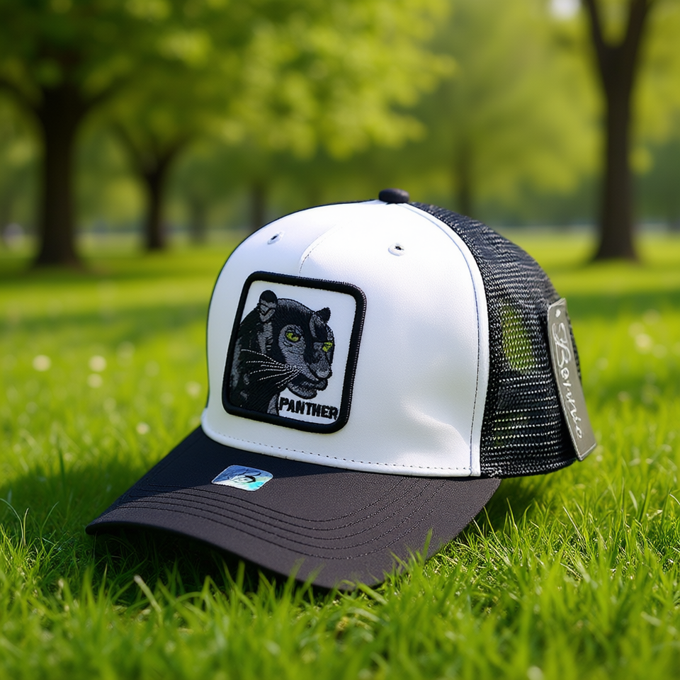 Cappello Trucker Panther a 6 Pannelli in Tessuto a Rete Unisex Casual Primavera Estate Traspirante Impermeabile con Logo Ricamato Frontale