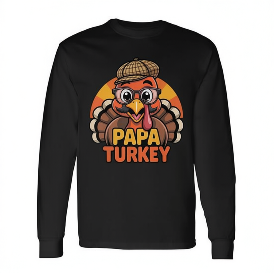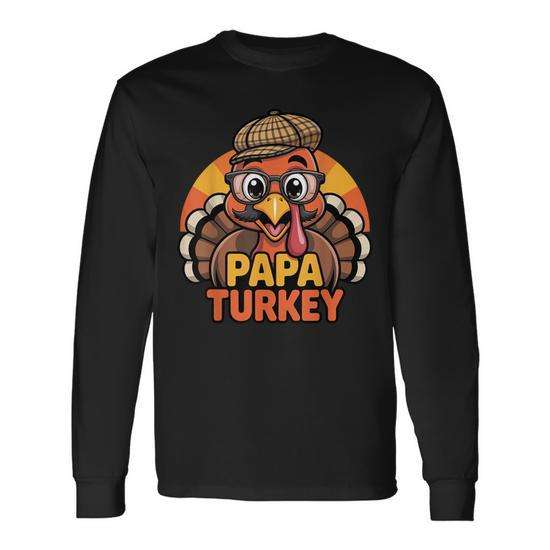 T-shirt a maniche lunghe da uomo Papa Turkey per il Ringraziamento, design coordinato per la famiglia