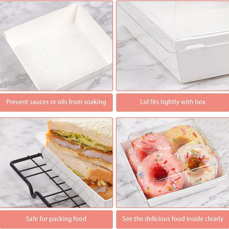 Scatole di Carta per Salumi con Coperchio Trasparente Sicuro, Contenitori Quadrati Marroni Monouso per Alimenti, Scatole per Pasticceria e Panetteria per Biscotti e Sandwich