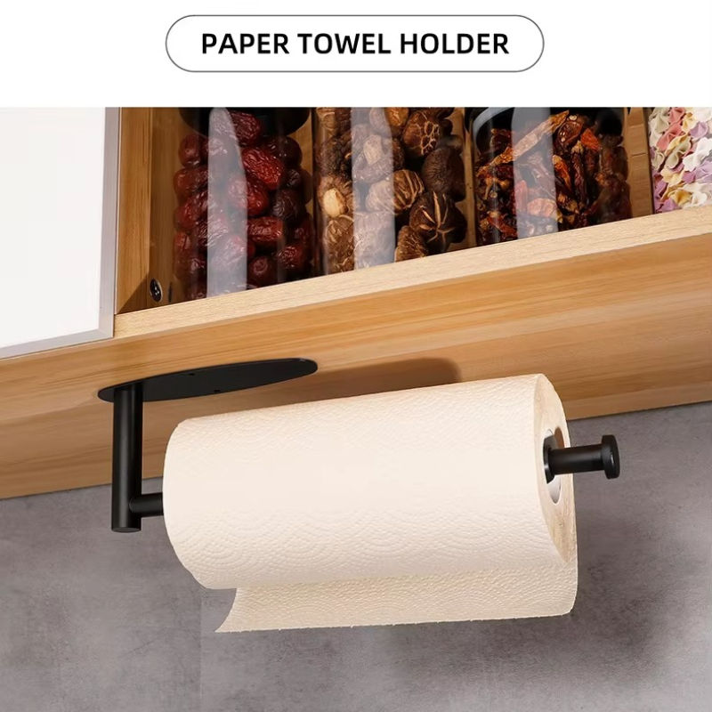 Paper Towel Holder Under Cabinet, Stainless Steel Kitchen Toilet Tissue Box & Plastic Wrap Organizer, Wall Mounted Bathroom