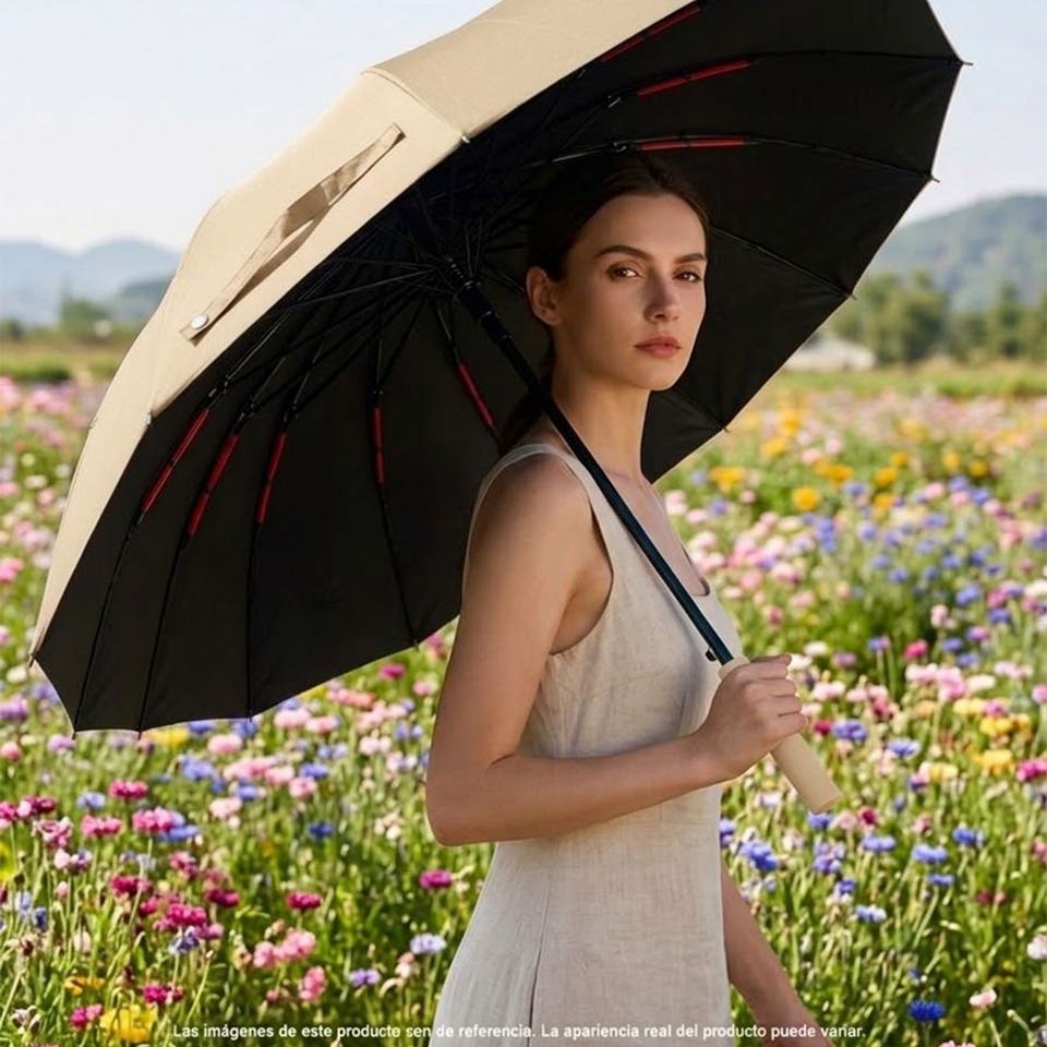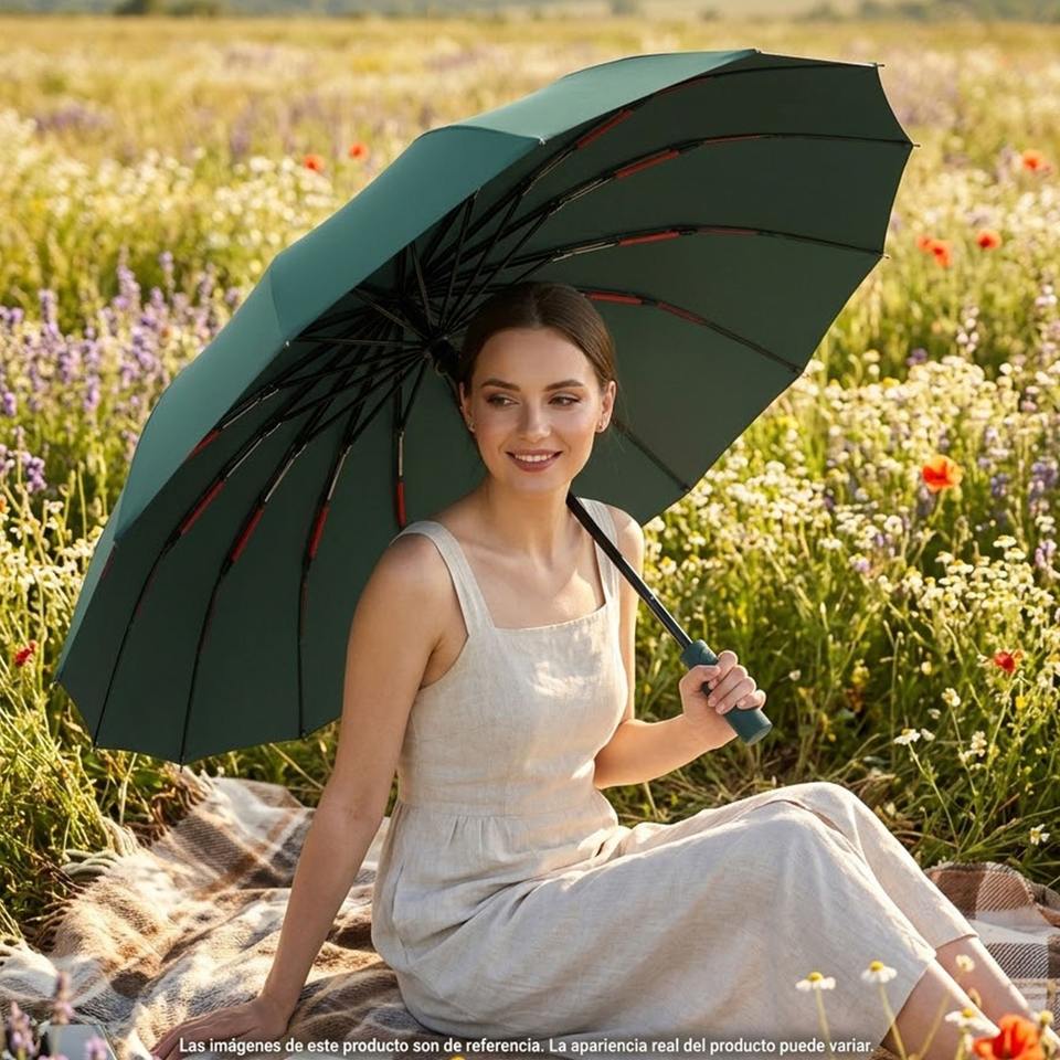 Ombrello Pieghevole Semi-Automatico Classico Rinforzato con 16 Stecche, Doppio Strato, Copertura Extra Large, Protezione UV Premium