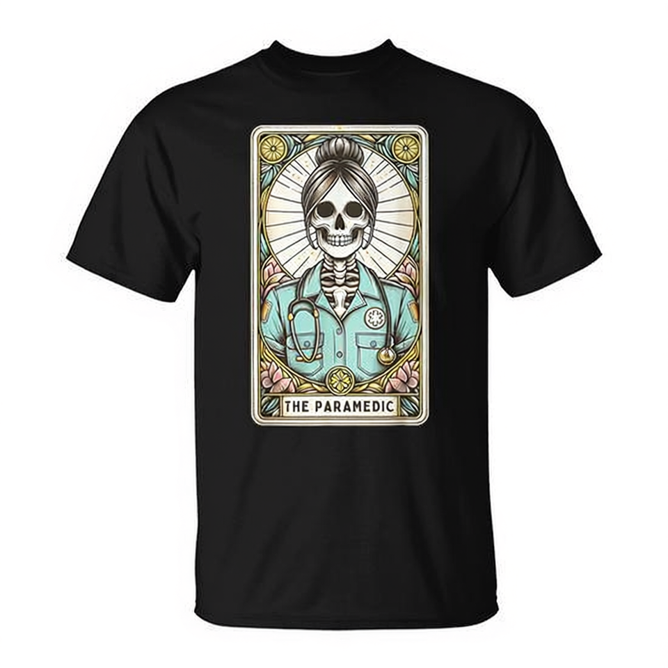 T-Shirt con Scheletro Paramedico e Carta dei Tarocchi, per Emergenze EMS EMT ER Infermiere, per Promozioni