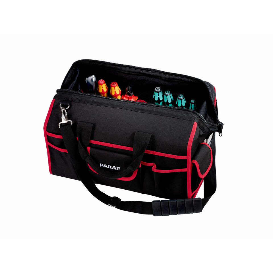 Borsa Porta Attrezzi Parat 37x28x8cm in Nylon con 15-19 Tasche e Tracolla Regolabile Rossa