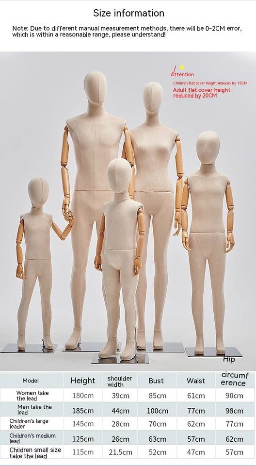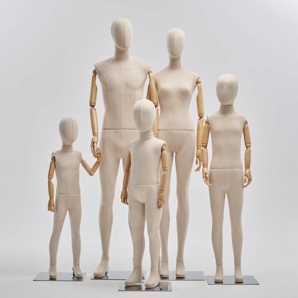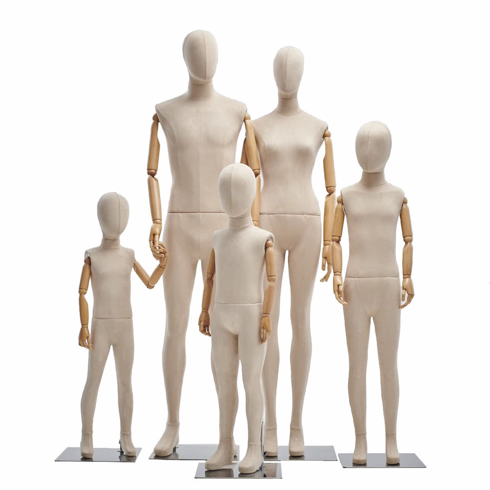 Parent-child Clothing Store Children's Full Body Wrapped Cloth Window Display Props Wooden Knuckle Hand Mannequins Female Male