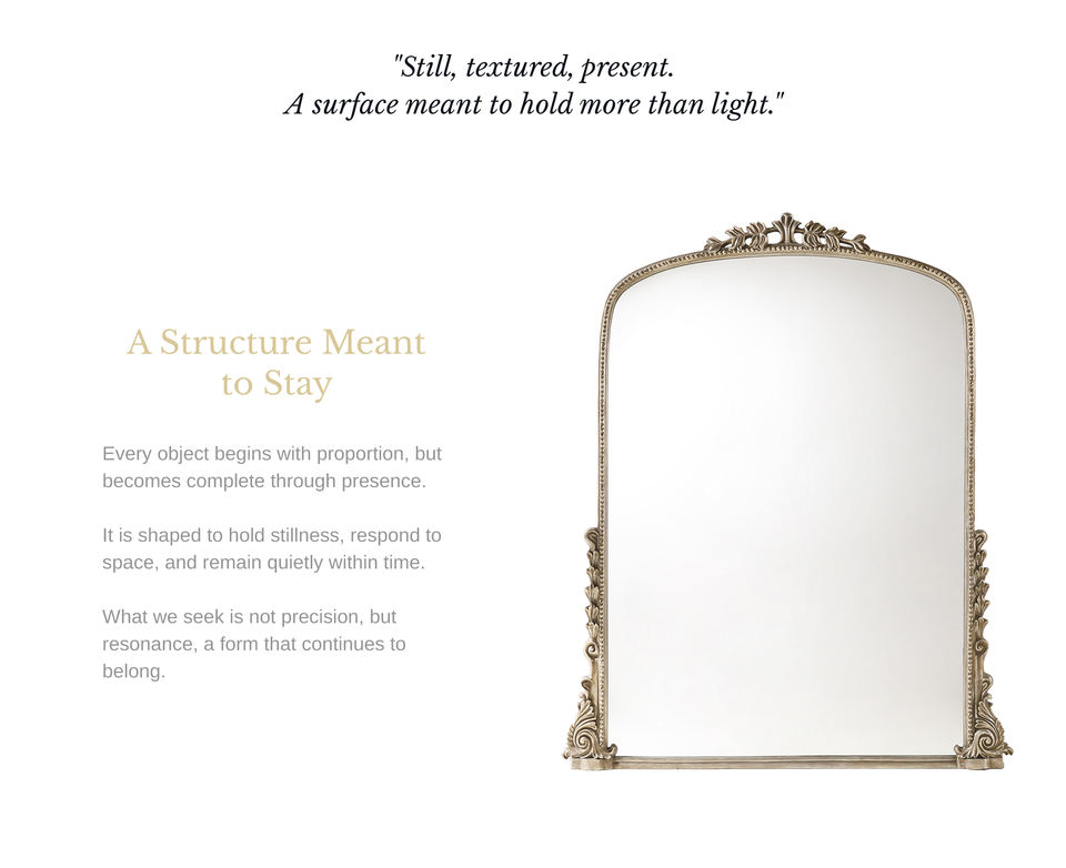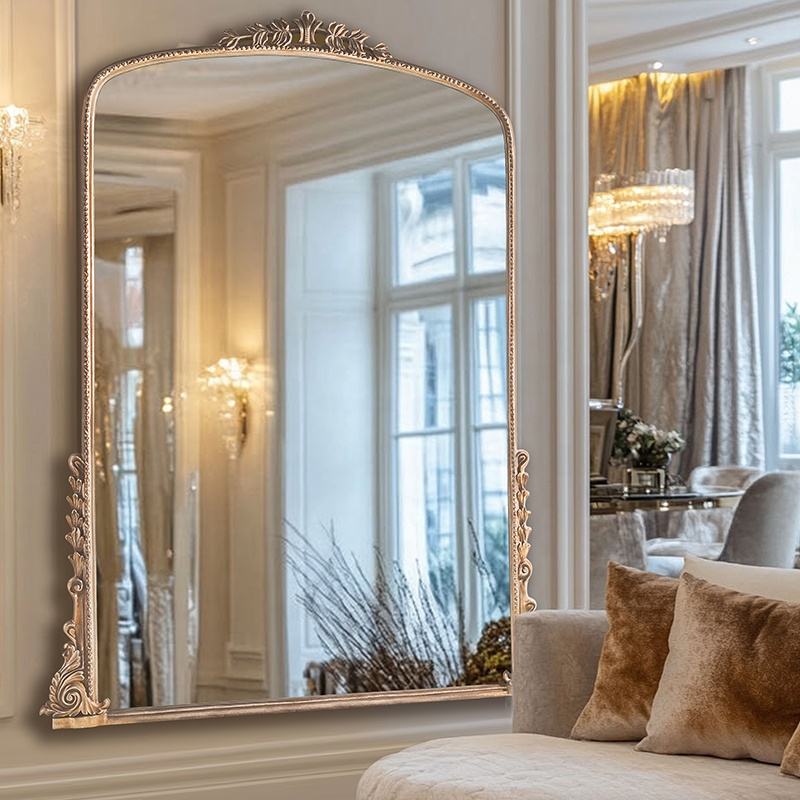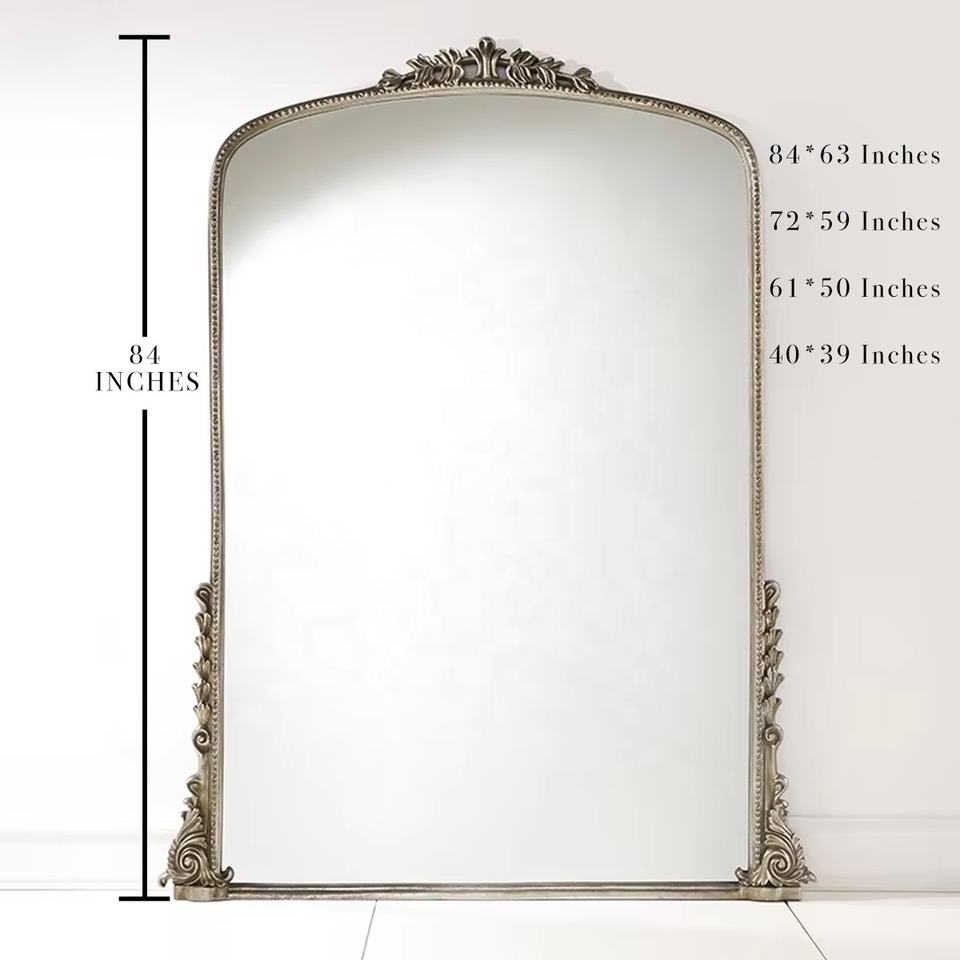 Parigi, Specchio da Terra Gigante ETERNAL di Design Esclusivo con Scultura Francese a Rilievo, Parte Superiore Intagliata e Cornice in Metallo 84*63 Pollici