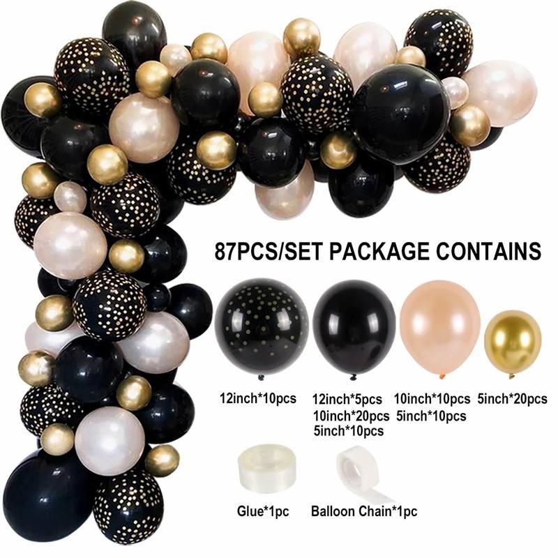 Party Celebration Bachelorette Bachelorette Wedding 136Pcs DIY Gold and Black Metallic Chrome Latex Balloons Decoration Kit