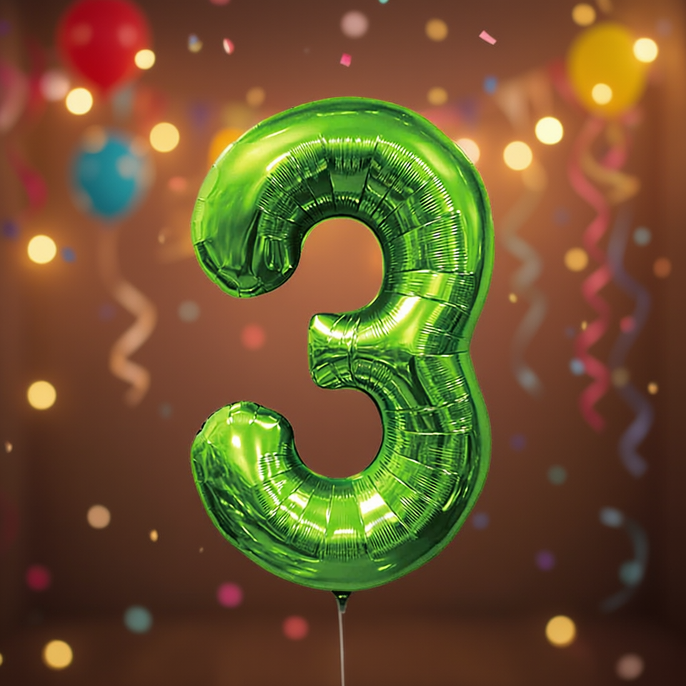 Palloncino in lamina metallica Party Love numero 3 verde 100 cm decorazione compleanno