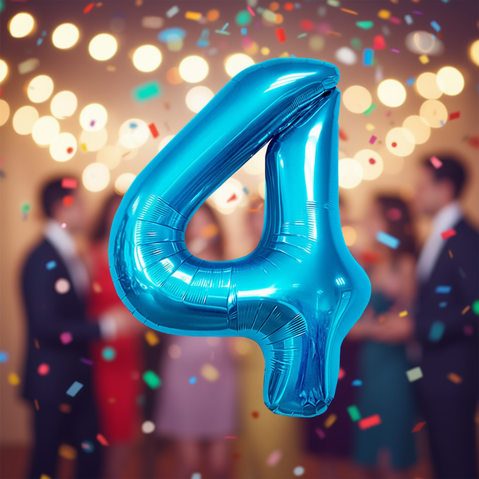 Palloncino Foil Numero 4 Blu 100cm per Feste, Riempibile con Elio, Decorazione per Feste