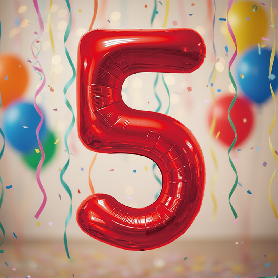 Palloncino Foil Numero 5 Rosso 45cm per Feste, Riempibile con Elio, Decorazione per Feste