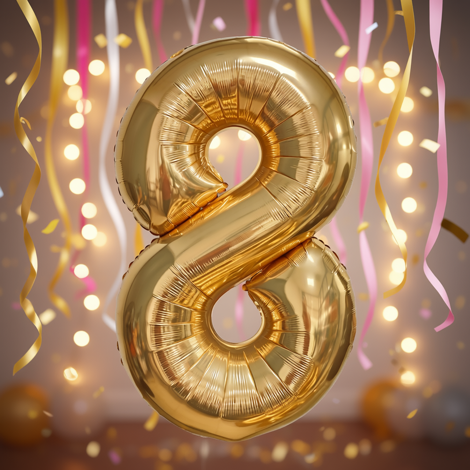 Palloncino Numero 8 in Foil Oro Champagne 1M, Gonfiabile all'Elio, Decorazione per Feste