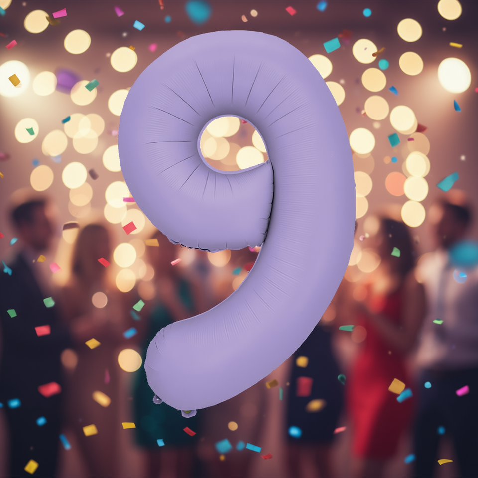 Palloncino in Foil Metallizzato Numero 9 Viola 1M per Feste, Decorazione per Compleanni e Feste per Bambini