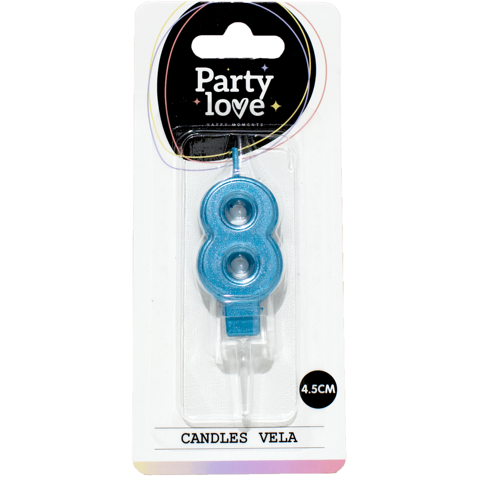 Candela Blu Numero 8 per Feste, Candele di Compleanno da 4,5 Cm