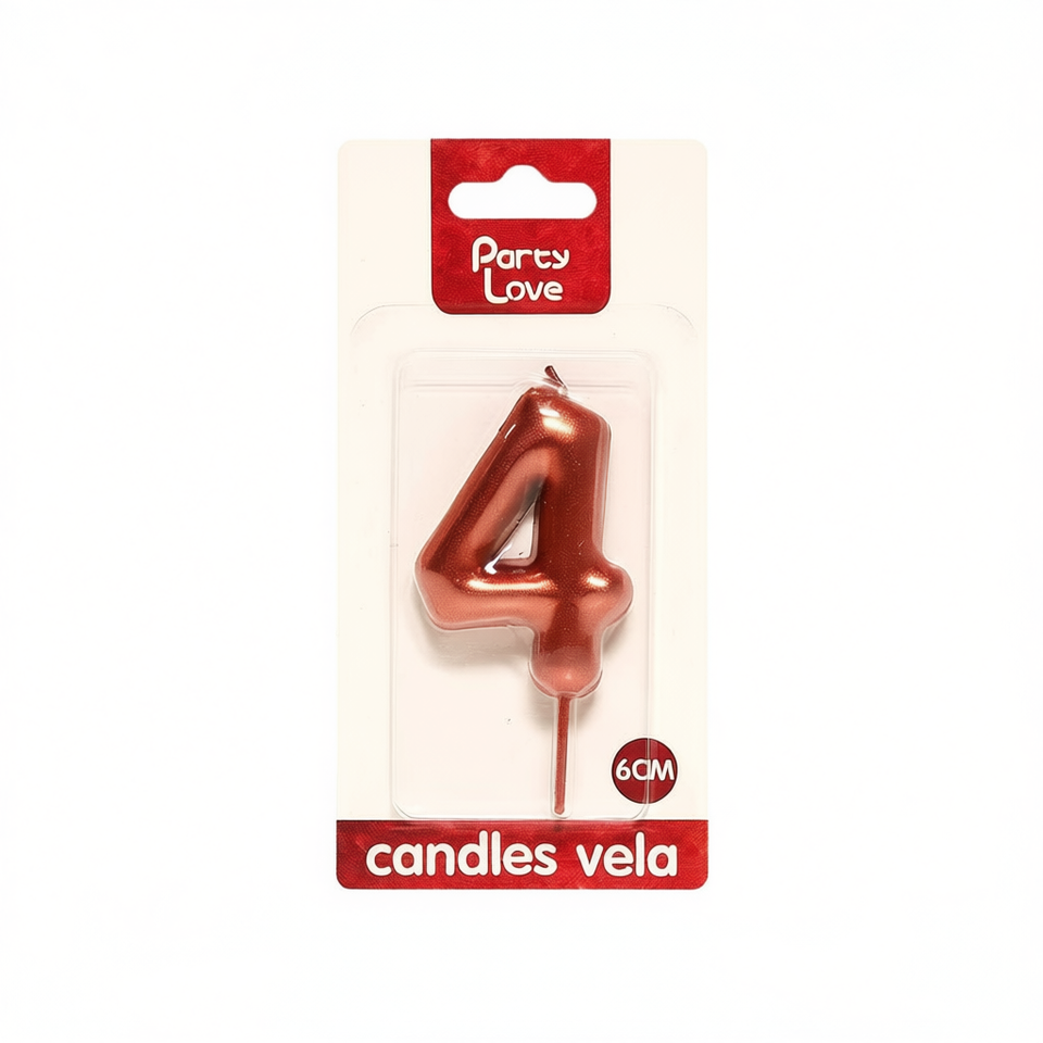 Candela Decorativa Numero 4 per Feste, 6 Cm, per Decorazione Torte di Compleanno
