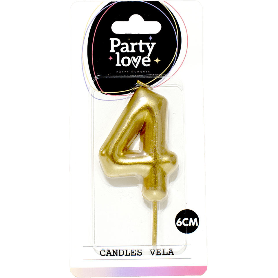 Candela Decorativa Numero 4 Dorata 6Cm per Torta di Compleanno