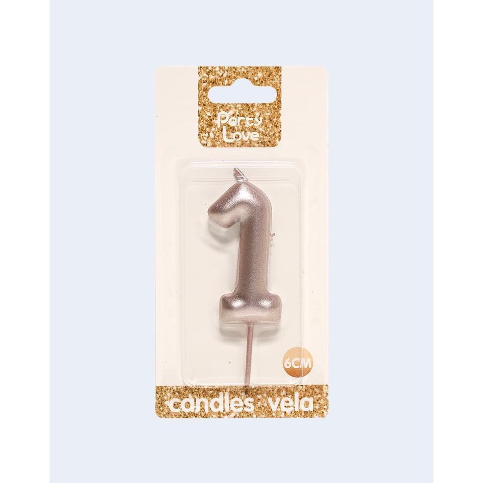 Candele Decorative 'Party Love' Numero 1 in Oro Rosa 6Cm per Torte di Compleanno