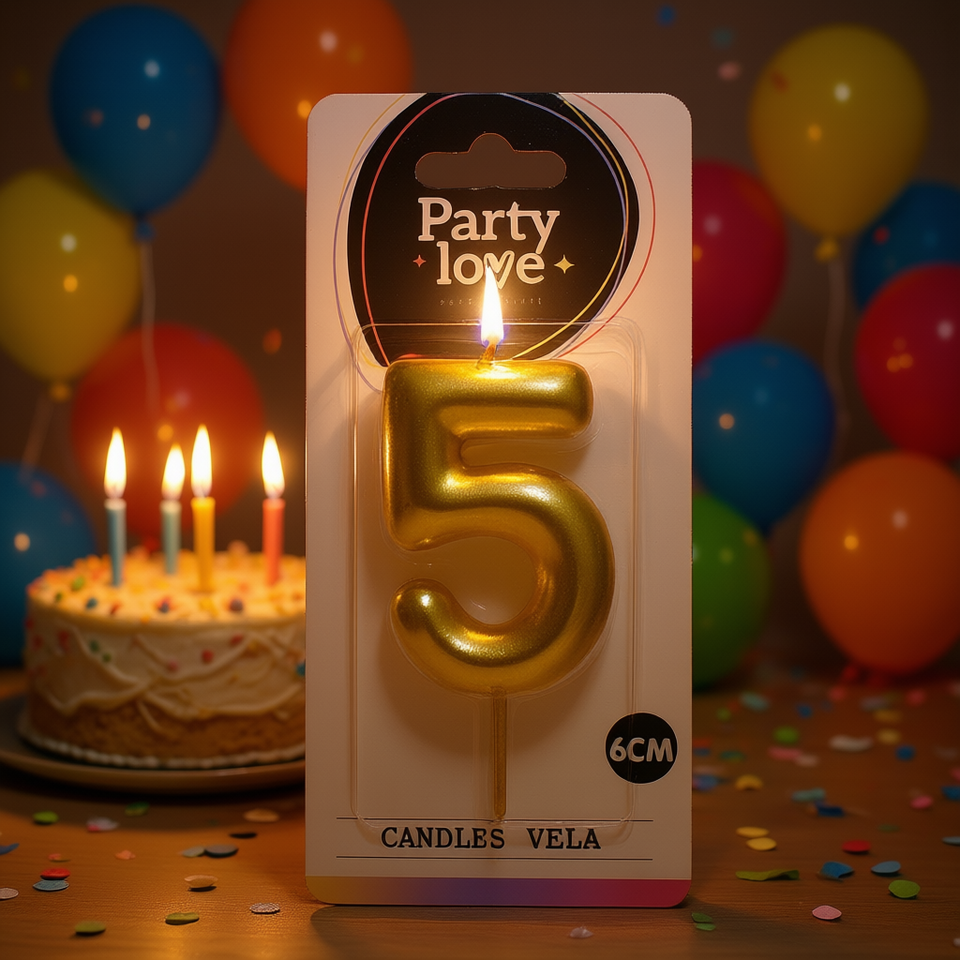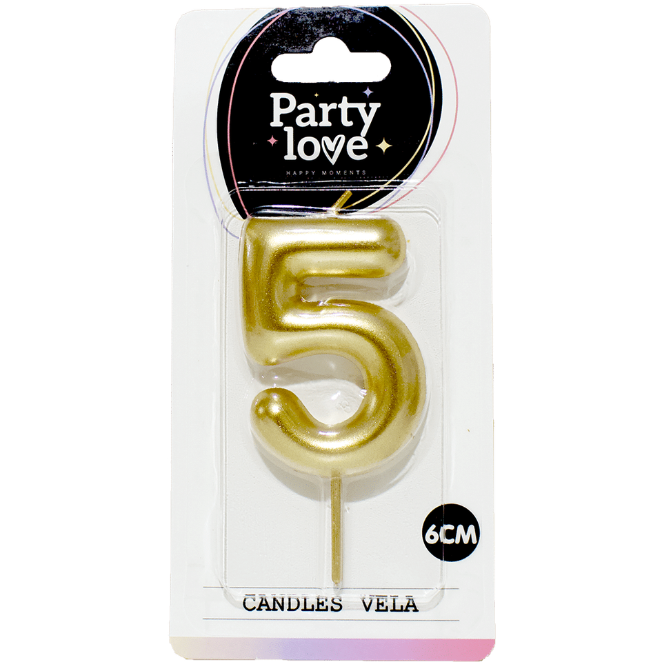 Candela Numero 5 Dorata per Feste, Candele di Compleanno da 6cm, Vela