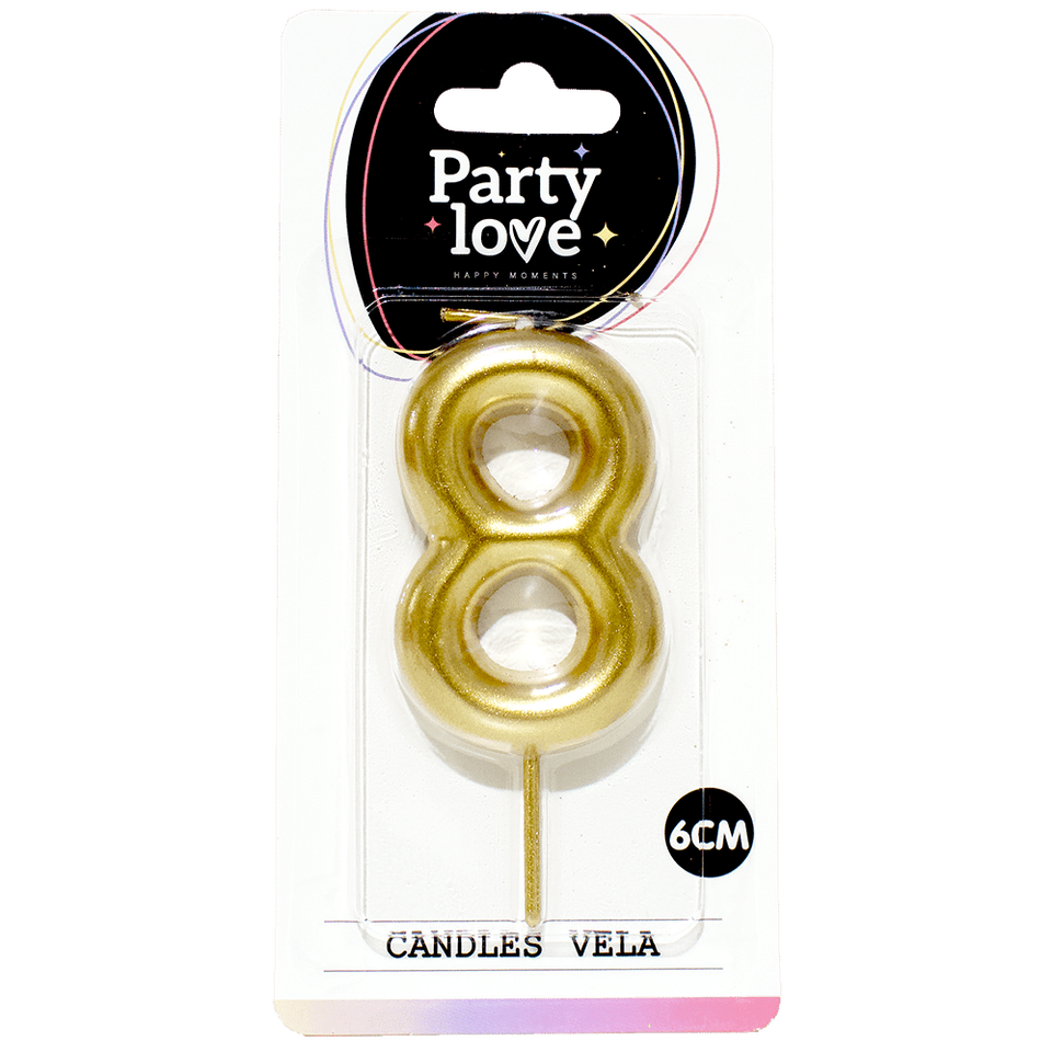 Candela Numero 8 Dorata Party Love 6Cm Candele per Compleanno