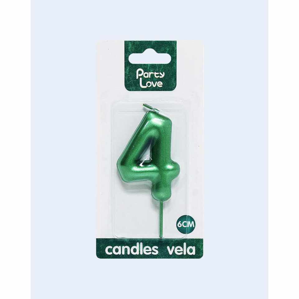 Candela Verde Numero 4 per Feste, Candele di Compleanno da 6 Cm