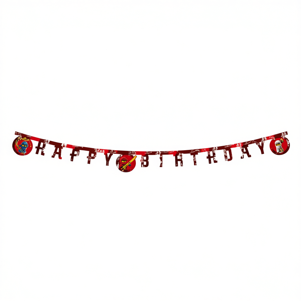 Ghirlanda di Carta Usa e Getta per Feste, Rettangolare con Cartoni Animati, Buon Compleanno Ninjago, 2M, 2 Pezzi, Sacchetto Stampato in Serigrafia