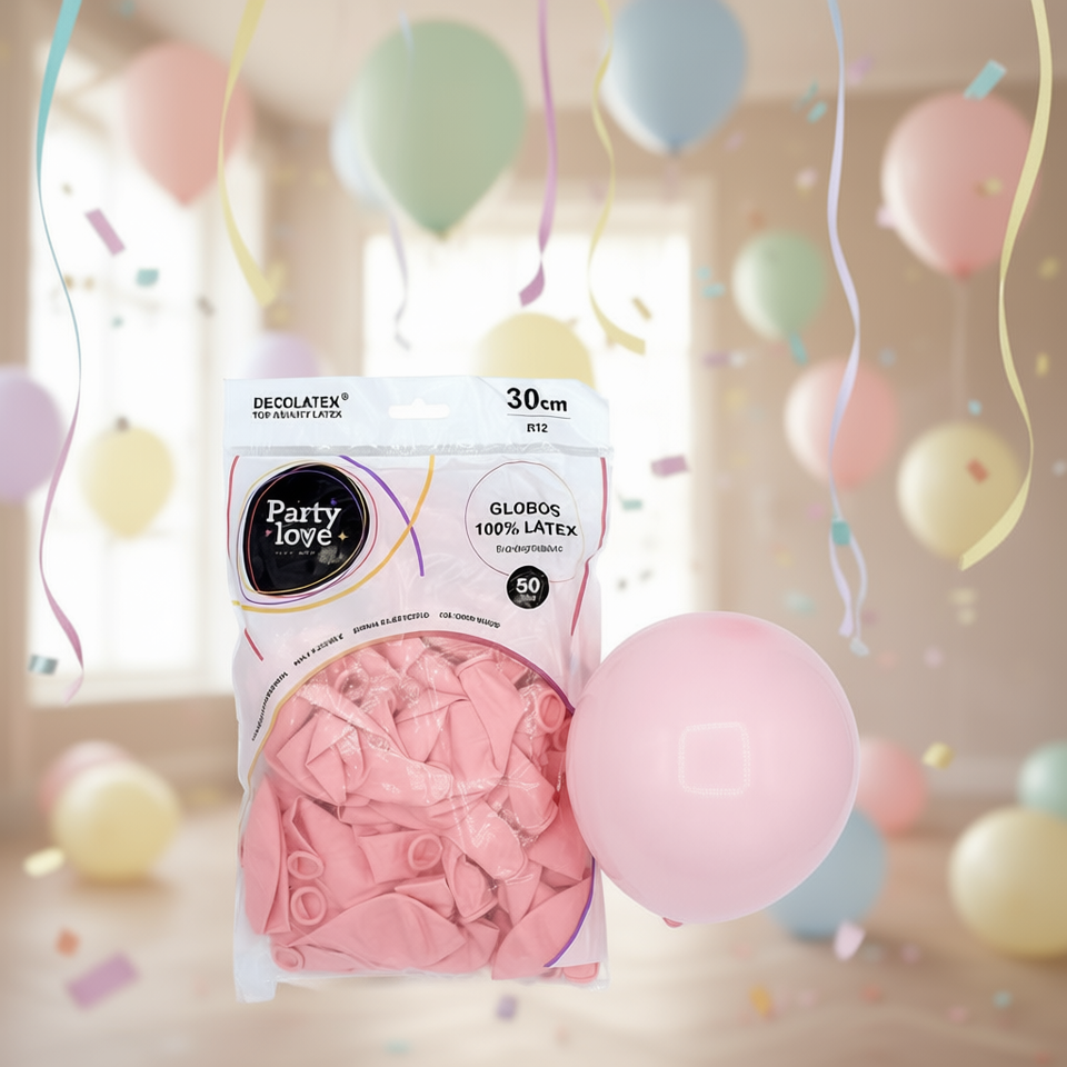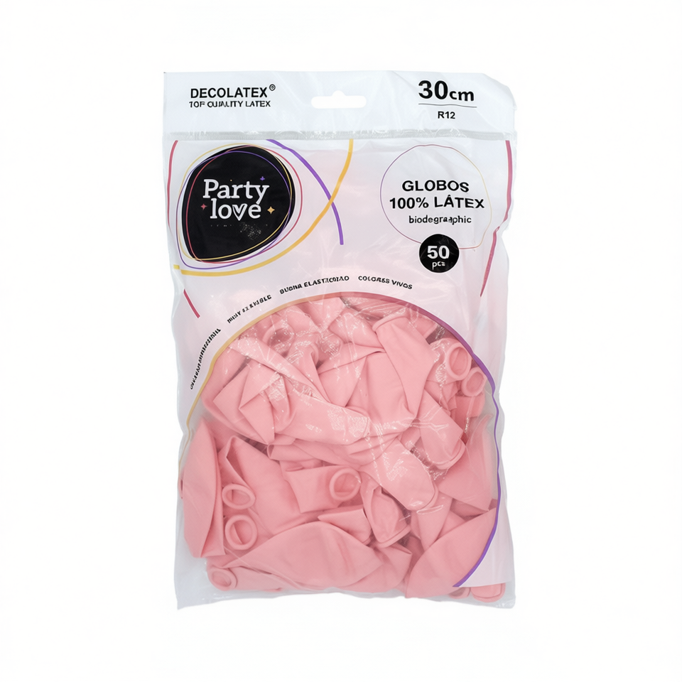 Palloncini in lattice Party Love 30 cm R12 rosa pastello biodegradabili 50 pz