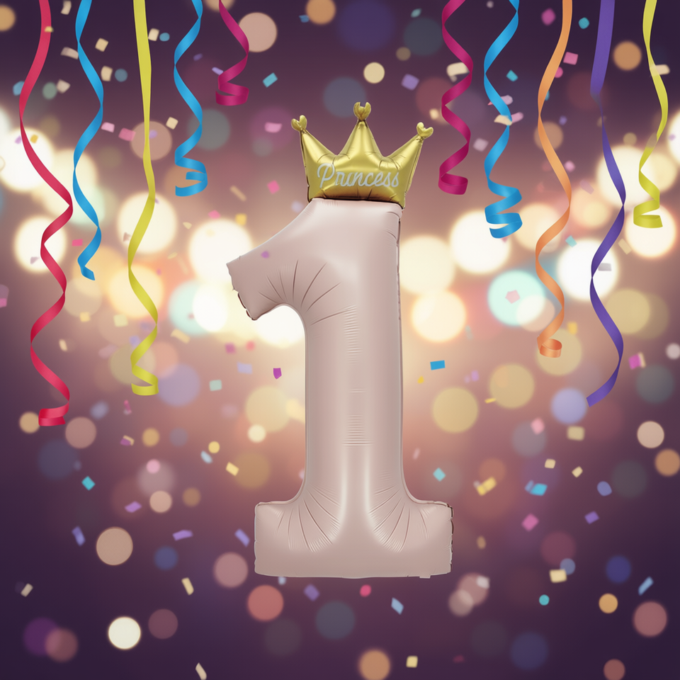 Palloncino Numero 1 in Lamina Metallizzata con Corona Rosa 57x124cm, Confezione da 12 Pezzi per Feste di Compleanno per Bambini