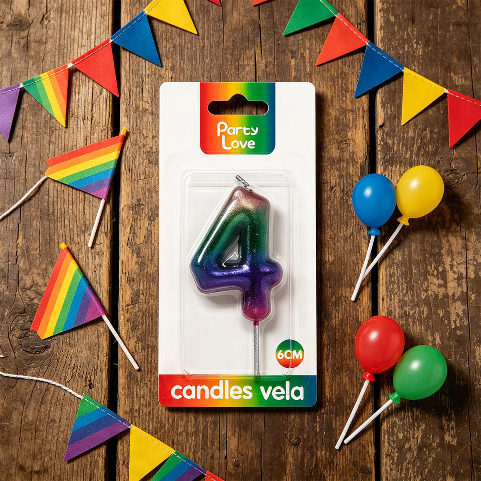 Candela Numero 4 per Feste, 6cm, Colori Arcobaleno, Candele per Compleanno