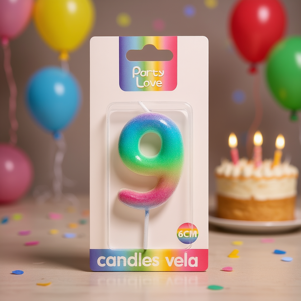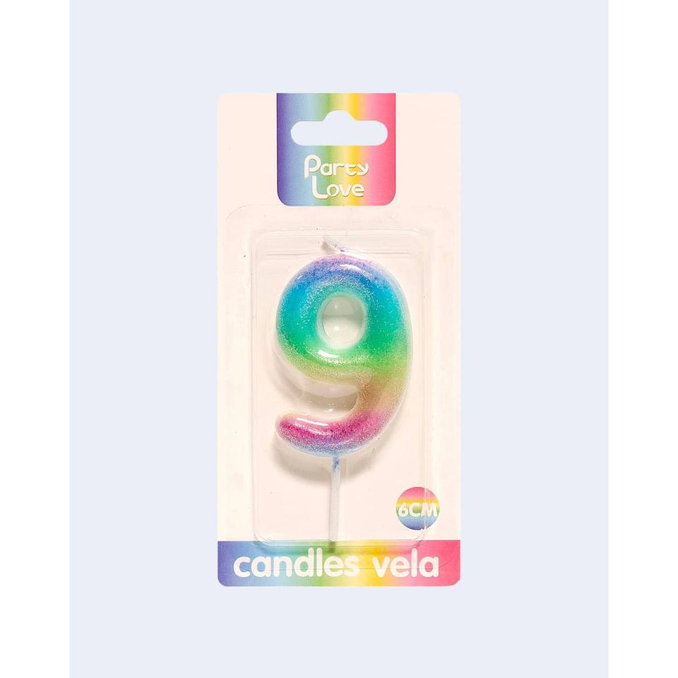 Candela Numero 9 per Feste, 6cm, Colori Arcobaleno, Candele per Compleanno