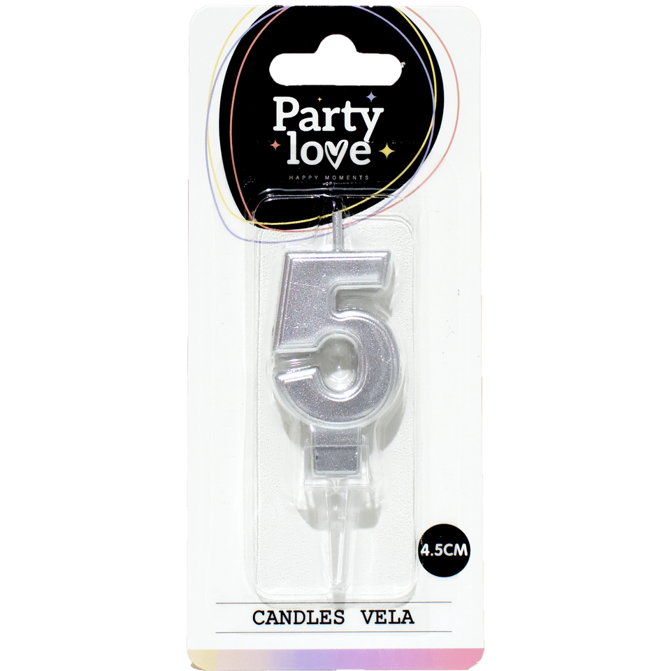Party Love Silver Number 5 Candle 4.5Cm Birthday Candles