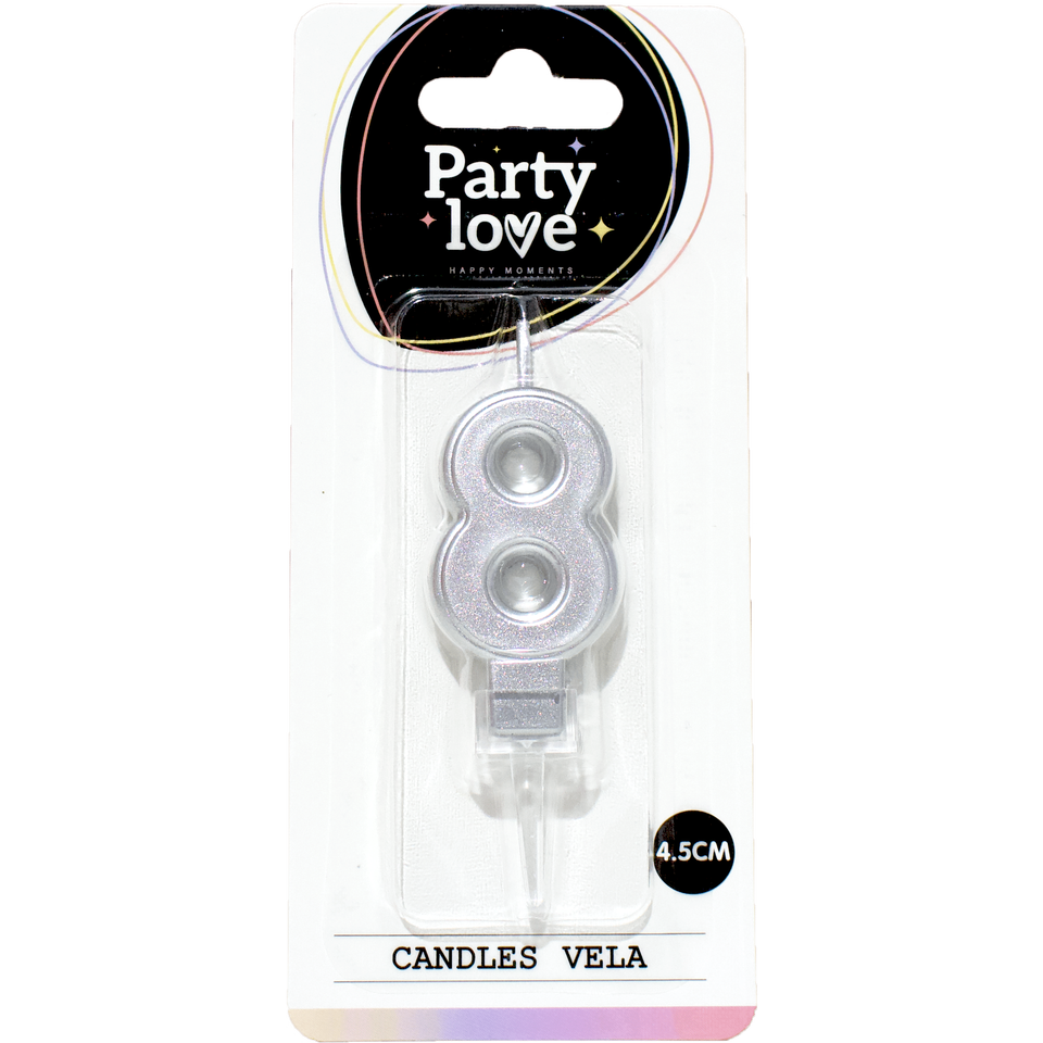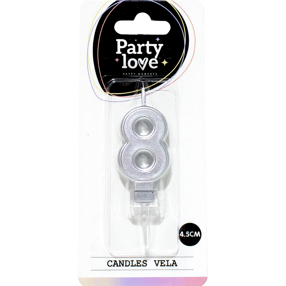 Candela Numero 8 in Argento per Feste, 4,5 Cm, Candele per Compleanno, Vela