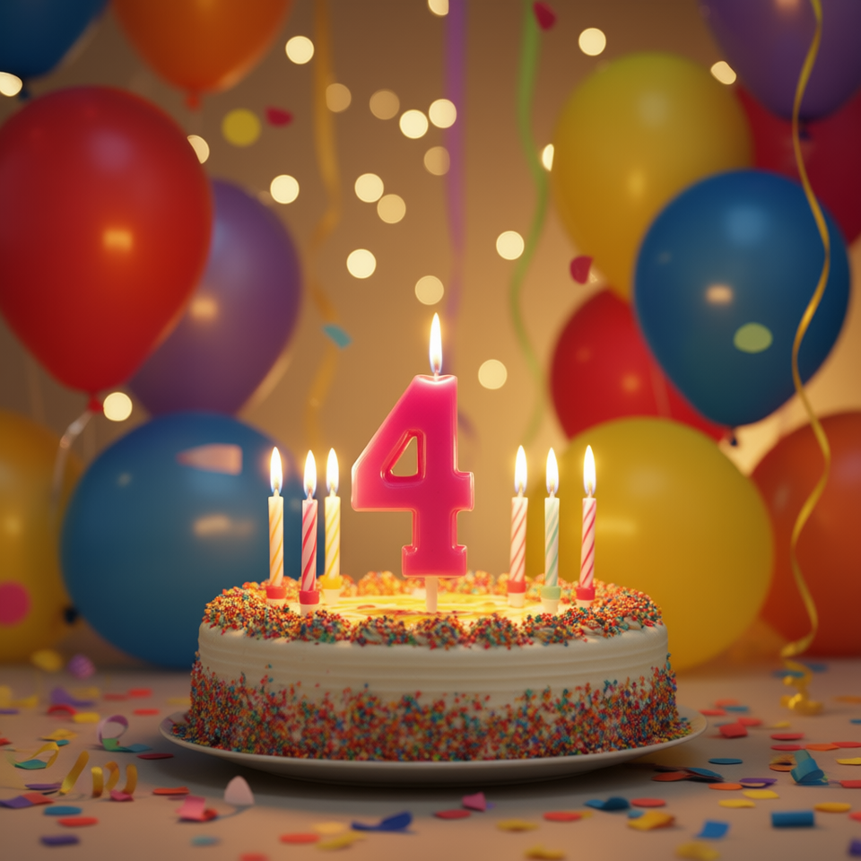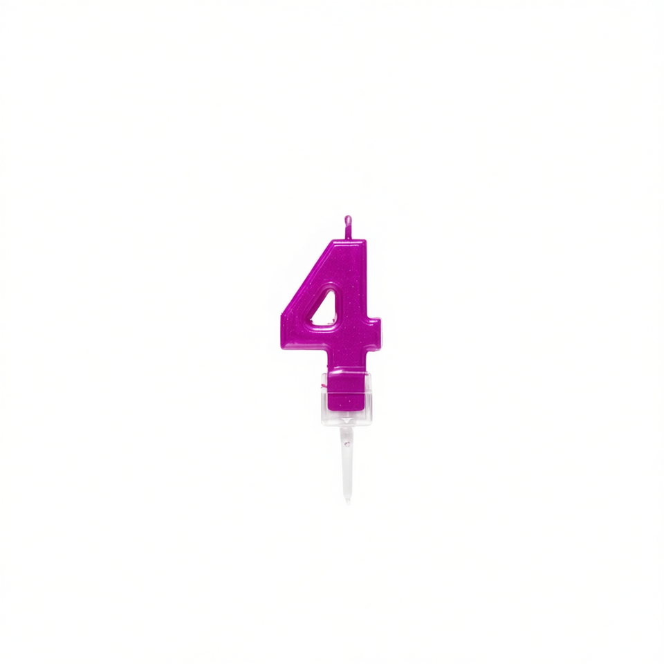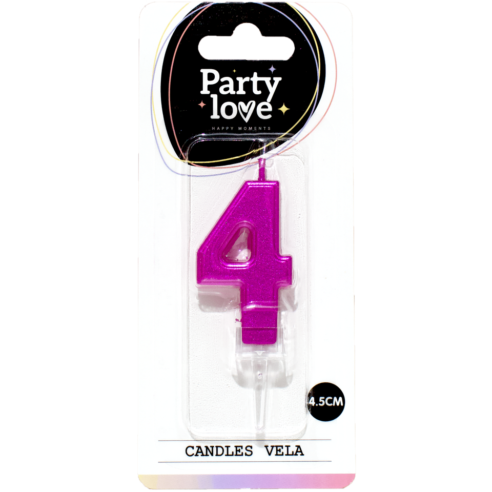 Candela di Compleanno Party Love Numero 4 Fucsia 4,5 Cm