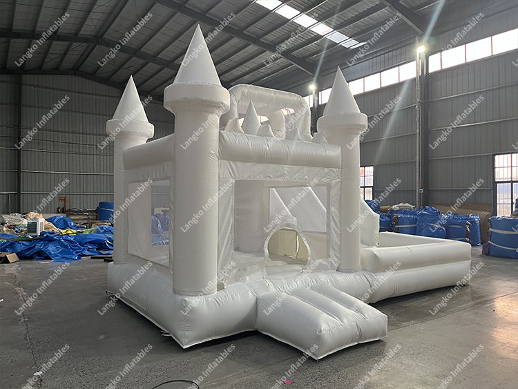 Castello Gonfiabile Bianco per Feste con Piscina di Palline e Scivolo d'Acqua