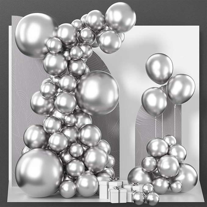 Palloncini Metallizzati Argento PartyWoo, Confezione da 85 Pezzi, Misure Assortite 18, 12, 10 e 5 Pollici per Feste